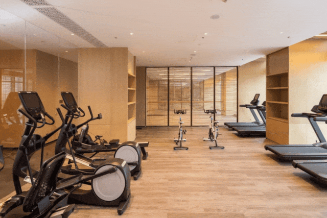 酒店配套健身房和无边恒温泳池