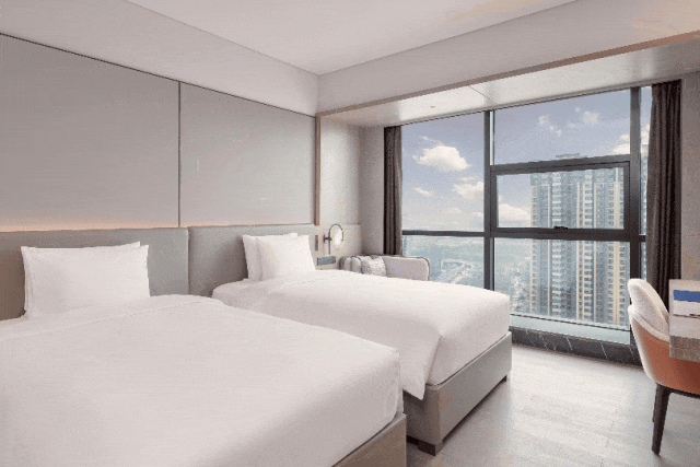 酒店拥有358间时尚现代的客房及套房