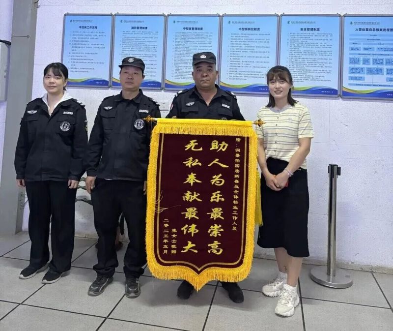 当工作人员将小女孩送回母亲怀中时,张女士泪流满面。几天后,她带着锦旗来到物业服务中心,上面写道:“助人为乐最崇高,无私奉献最伟大”,表达了母亲深深的感激与物业守护带来的安心。