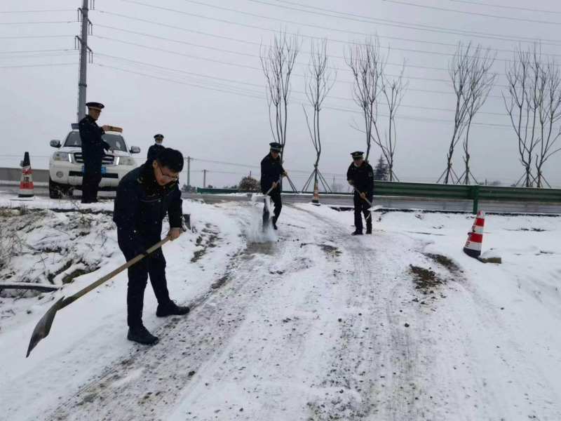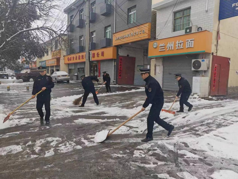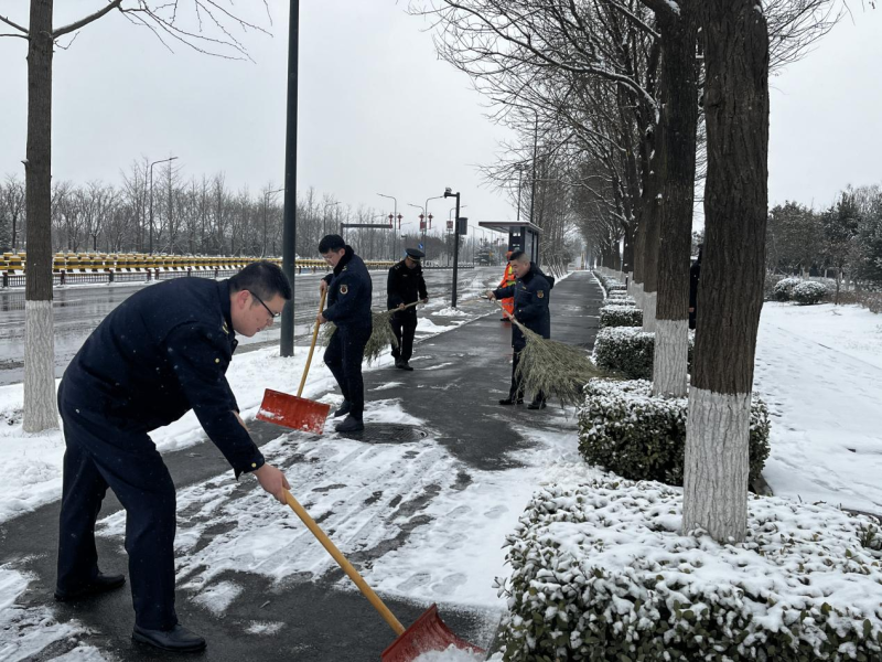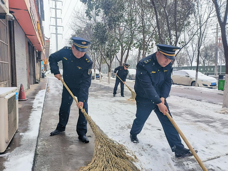 雪情就是命令。沣东新城综合行政执法支队高度重视除雪保畅工作,把扫雪除冰保畅通、保民生、保安全作为“我为群众办实事”的具体举措,第一时间响应启动除雪保畅预案。执法人员以雪为令,迅速行动,或手执扫帚铁锨或抛洒融雪剂,集中对辖区主次干道、桥梁、地铁公交站点、商业广场周边等重点路段区域的人行道和非机动车道积雪进行清除,做到雪停路净。执法人员还通过上门告知,积极动员辖区临街店铺、企事业单位、小区物业积极参与除雪保畅行动,为保障广大市民群众安全畅通出行尽一份力。