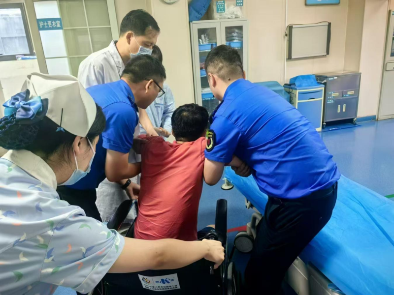 在送医的路上,他们不停询问群众的病情,安抚群众的情绪。到达医院后,他们又积极协调医院开辟绿色通道,确保病人能够得到及时妥善的处置。他们守在一旁,直到家属赶到医院,才放心地回到自己的岗位。