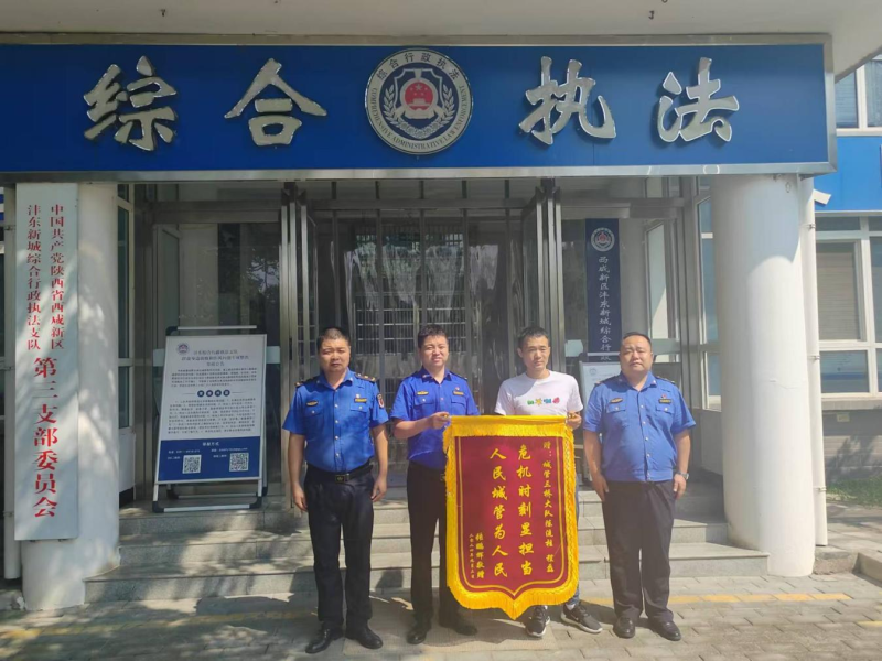 2024年9月3日,群众张先生来到沣东新城综合行政执法支队三桥大队,送上一面写有“危机时刻显担当 人民城管为人民”的锦旗。这面锦旗,承载着深深的感激之情,更见证了一段温暖人心的故事。