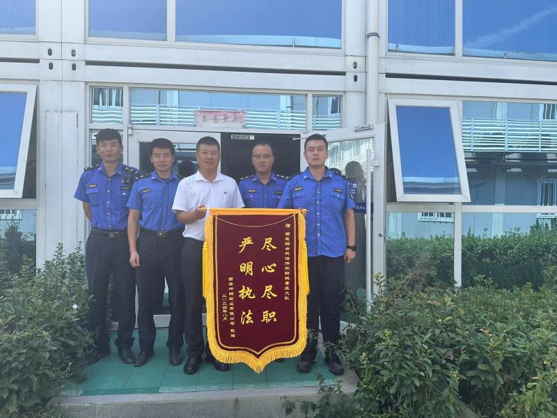 9月3日上午,欢乐谷游乐园秩序维护中心西安坤翔实业有限公司代表园区向沣东新城综合行政执法支队景区大队送来了一面印有“尽心尽职,严明执法”的锦旗,对开园以来景区大队加强执法服务保障,助力欢乐谷游乐园周边市容环境秩序显著提升表示肯定。