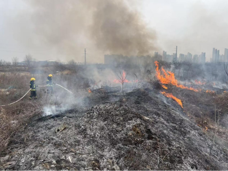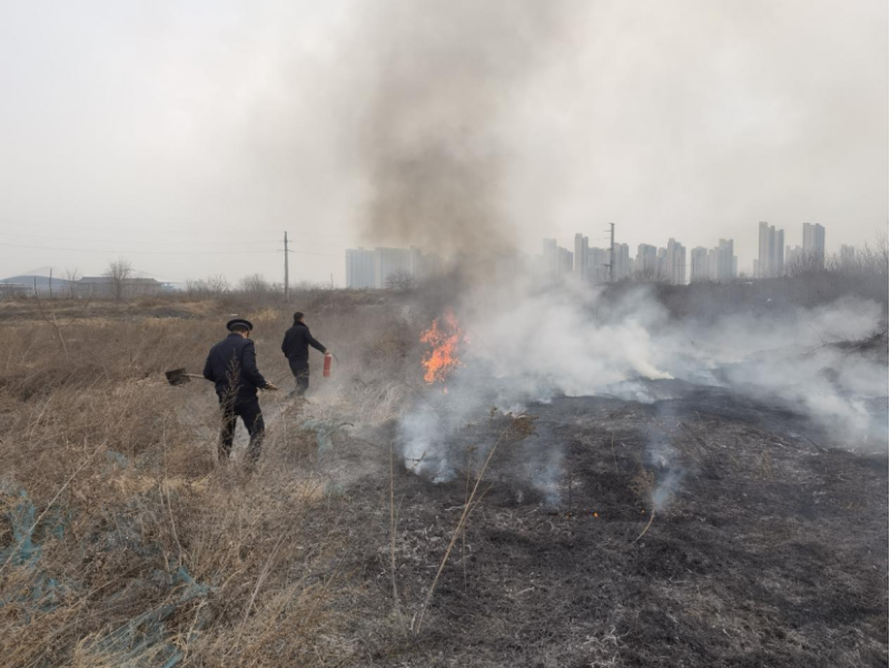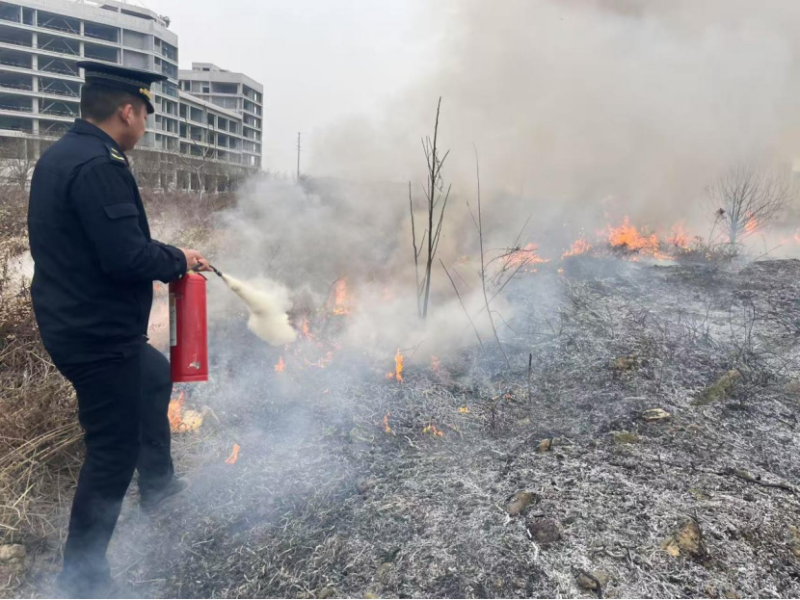2025年2月14日9时30分,西咸新区沣东新城综合行政执法支队直属一大队执法人员曹杰、刘芳、李柱巡查至西周大道与文宣四路东北角斯莱克项目时,发现项目东边有一处空地发生火情,情况十分危急。三名执法队员快速研判险情后,从执法车辆取来车载灭火器及从项目部借来的干粉灭火器进行灭火。同时迅速拨打119,协调消防部门进行灭火救援。