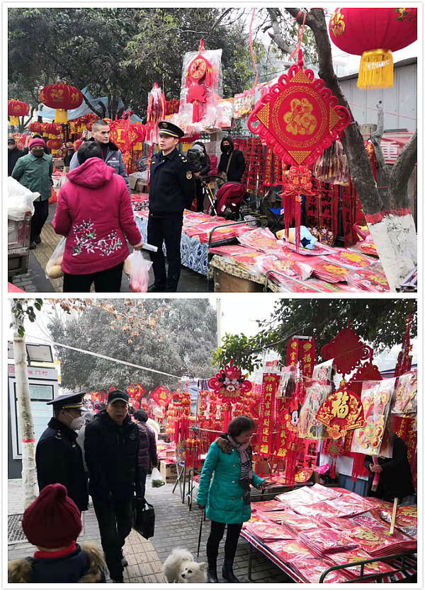 三是严管理。执法人员将年货市场作为巡查重点,实施严格监控管理,对违反规定的摊点及时责令整改;对划定区域以外的马路市场坚决予以取缔。