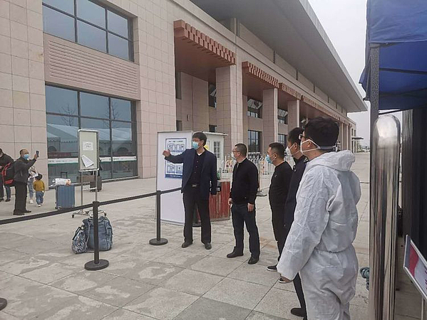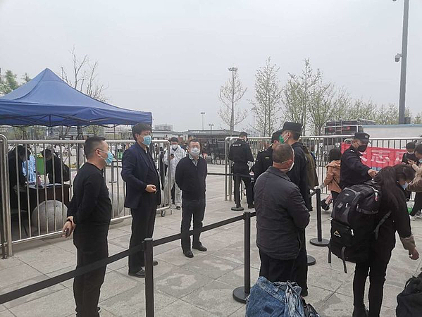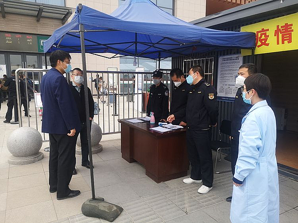 4月5日下午,沣东新城党委委员、管委会副主任马建昌带队深入阿房宫高铁站督导检查疫情防控和社会稳定工作,并慰问奋战在疫情防控一线的工作人员。党委政法工作部部长李琦、副部长杨帆陪同检查。
