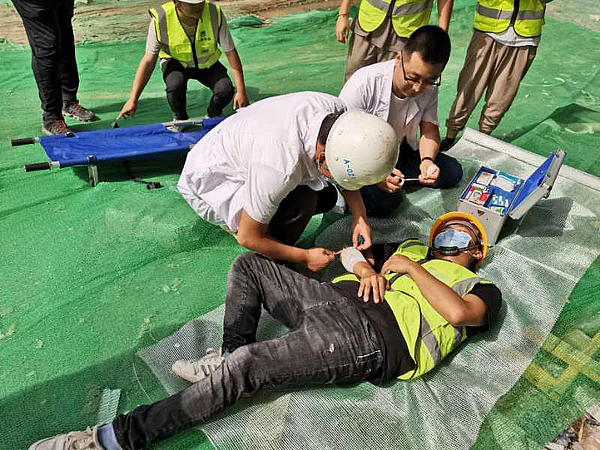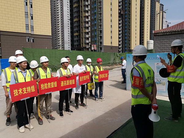 2020年6月20日,润馨怡园项目部在“2020年安全生产月”活动的统一要求下,组织项目部的技术支持组、抢险救援组、通讯联络组、医疗救护组、警戒保卫组共同参与了安全生产月——高空防坠落演练活动。遵照项目部的安全管理流程及处理突发事件的措施,参演人员井然有序、分工明确按平日部署顺利完成伤员救治及现场清理工作,此次演习为参建人员提供学习的平台、实际操作的机会,更验证了项目部已有规章制度、处理突发事件流程及救治措施的可行性和有效性。为项目项目平安顺利运行提供理论与实践的保障。
