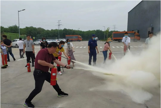 首先,建章路卫星消防站站长张辉对嘉里物流(西安)有限公司义务消防队员进行了消防服着装培训,强调了消防服的摆放应以便捷、快速为基准,同时讲解了一些快速着装的技巧,义务消防队员对于穿着消防服也有了更深的理解。紧接着在库区开阔安全处进行实战消防演练,拔销-弓步-对准火源根部-按压-左右扫动,在消防员的正确指导下未使用过灭火器的员工均进行了实操演练。最后,进行库内发现火情模拟合练。库内操作人员张瑶发现火情后,通过手报消防电话进行火情报警,公司义务消防队员张云瑞等立刻着装投入战斗,建章路卫星消防站接警后立刻到达现场,迅速拉出水带水枪进入“火场”扑救。整个演练过程有条不紊、处置过程井然有序,达到了演练目的。