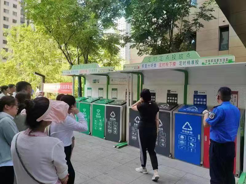 2023年8月4日上午沣东新城综合行政执法支队组织辖区物业、学校、医院、园区及清运单位等垃圾分类管理人40余人在沣华熙城小区召开生活垃圾分类专项执法整治工作宣传活动。