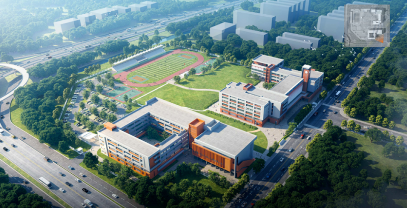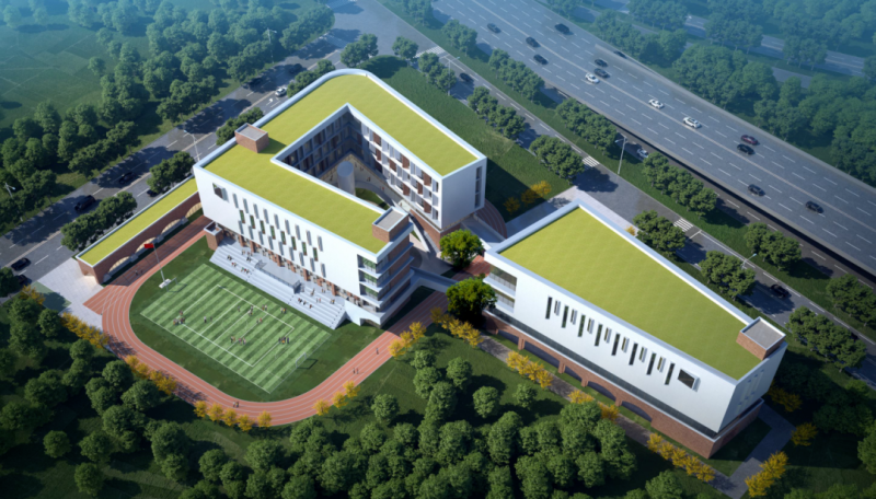 阿房一路学校项目位于沣东新城阿房一路与西三环交汇处东北角,总规划用地91.78亩,总建筑面积49778平方米,为九年一贯制学校,包含小学部和中学部两部分,整体规划有60个教学班。其中小学部建筑面积1.8万平方米,设置有36个教学班,可容纳1620名学生,预计2024年9月建成投用。