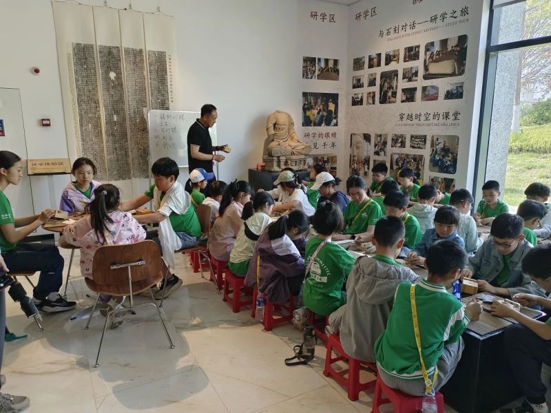 活动内容:在国际博物馆日当天,陕西汉唐石刻博物馆日举行纪念日研学体验课,带领学生们进行石刻科普活动,并开展篆刻体验活动,感受碑石的雕刻技术。