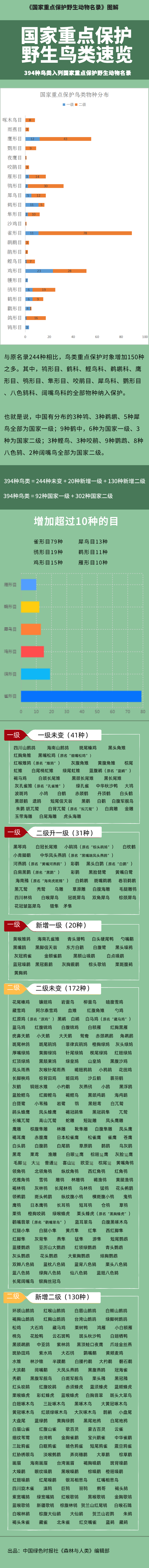 一图速览 | 394种鸟类入列国家重点保护野生动物名录