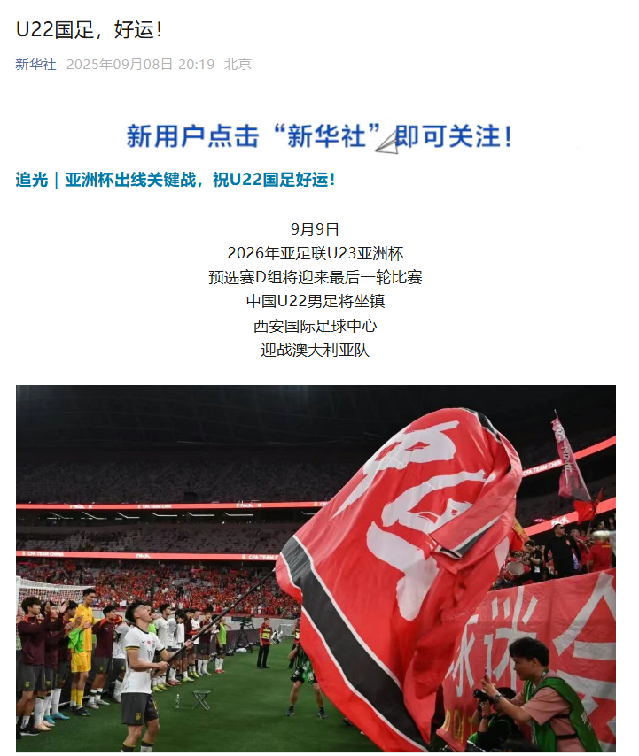9月3日—9日,U23亚洲杯预选赛(D组)在西安国际足球中心盛大举行,中国队以2胜1平积7分的不败战绩,成功晋级U23亚洲杯正赛。据统计,近9万球迷走进现场摇旗呐喊、观赛助威。