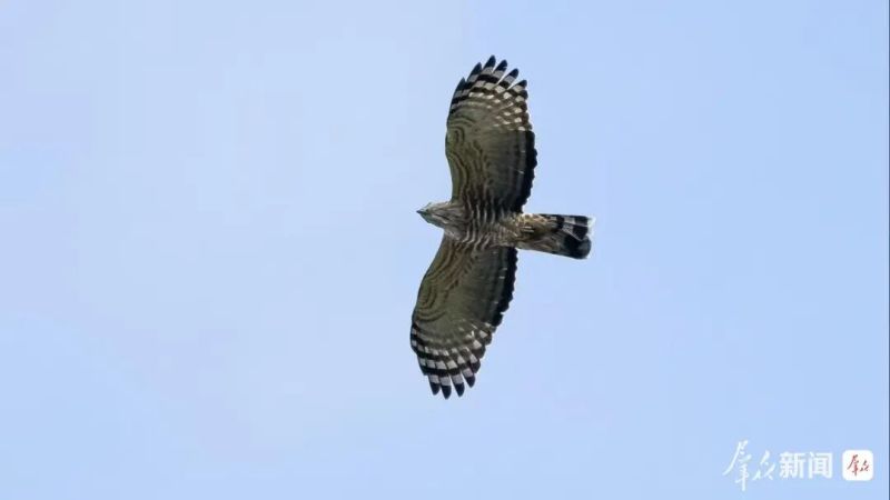 据了解,褐冠鹃隼是鹰形目鹰科鹃隼属中型猛禽,体长41厘米至48厘米,偏好栖息于丘陵、山地及平原森林,也会出现在疏林草坡与林缘田间,晨昏时分活动频繁,主要以昆虫为食,也捕食蜥蜴、蝙蝠、鼠类等小型脊椎动物。作为国家二级保护动物,它还被列入《濒危野生动植物种国际贸易公约》附录Ⅱ及《中国脊椎动物红色名录》近危物种,此前国内仅在广西、海南、云南、湖南等地有分布记录。