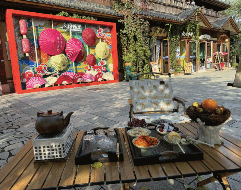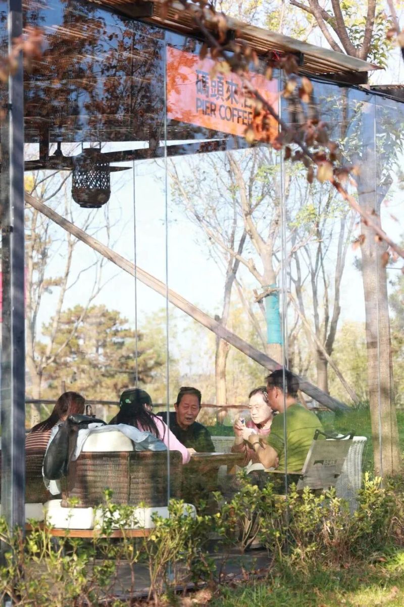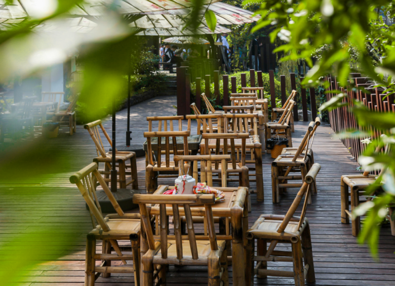 走入茶馆,城市的喧嚣被自然宁静的氛围取代。树影、光线、气味交织在一起,清雅古风,韵味十足。落叶也让这里氛围感满满。一杯热茶,三五好友,即使是在室外,下午茶时光仍然热气腾腾。