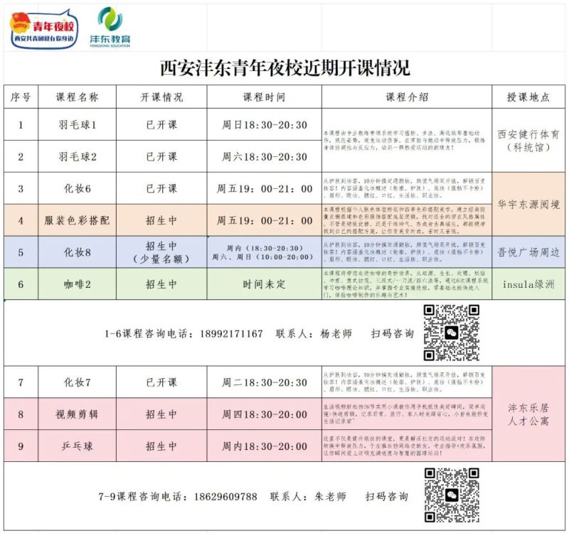 还有更多夜校课程,沣东的小伙伴们快来体验吧!