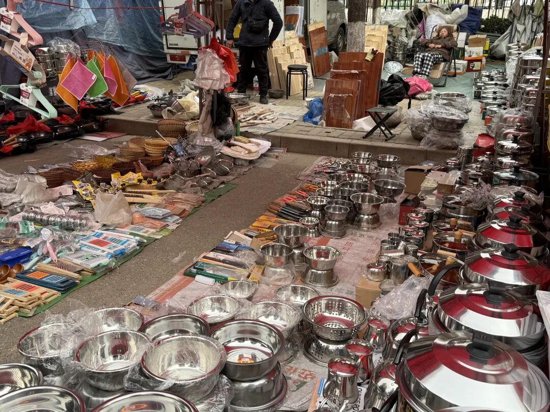 逛到集市深处,总能淘到些贴心的居家好物。素雅的陶瓷碗筷,盛得下陕味饭菜的香;厚实的床上用品,能裹住新春夜晚的暖;还有磨辣椒面的小石臼,藏着老陕饭桌上的烟火气。这些平平常常的物件,把新春的温暖,悄悄融进了柴米油盐的日常里。