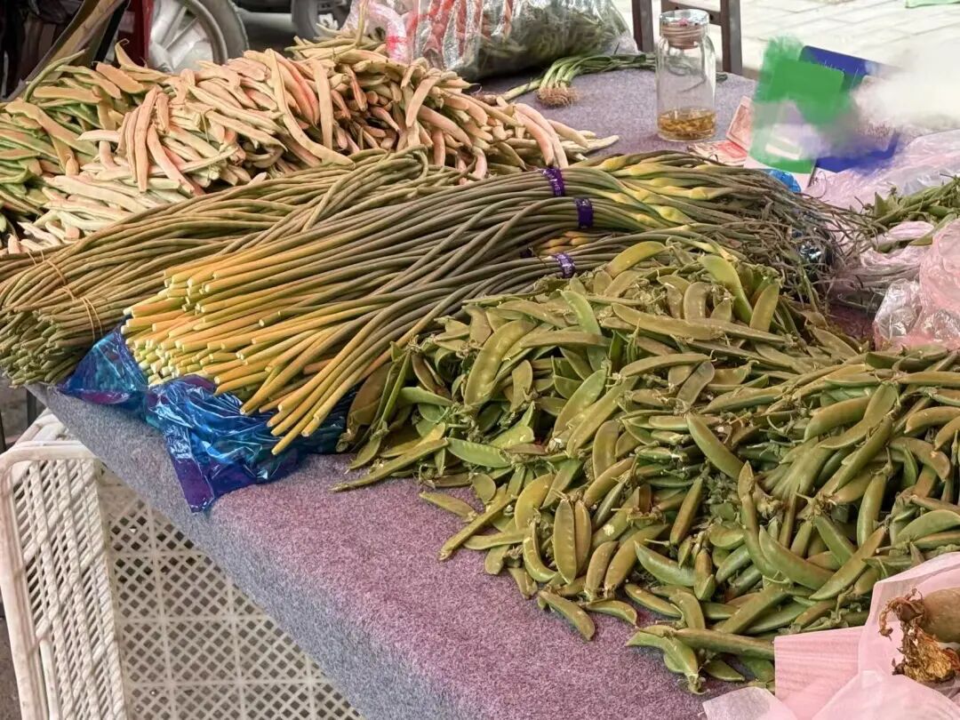 作为集市核心区域,时令鲜蔬摊位满眼鲜活:铁棍山药、土豆、萝卜等根茎类蔬果敦实饱满;青菜、蒜苗、莴笋等叶菜鲜嫩水灵,品类一应俱全,价格还亲民实惠,正是春节厨房的刚需好物,清炒、煲汤、涮锅样样适配。