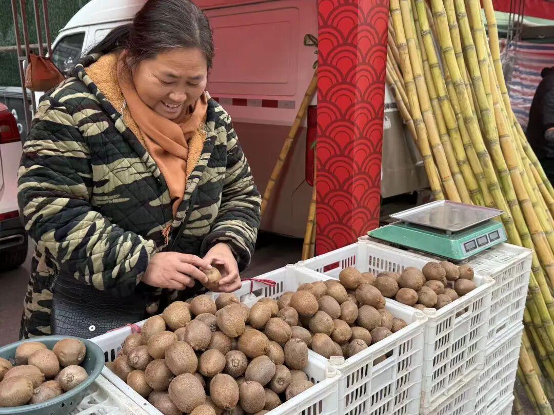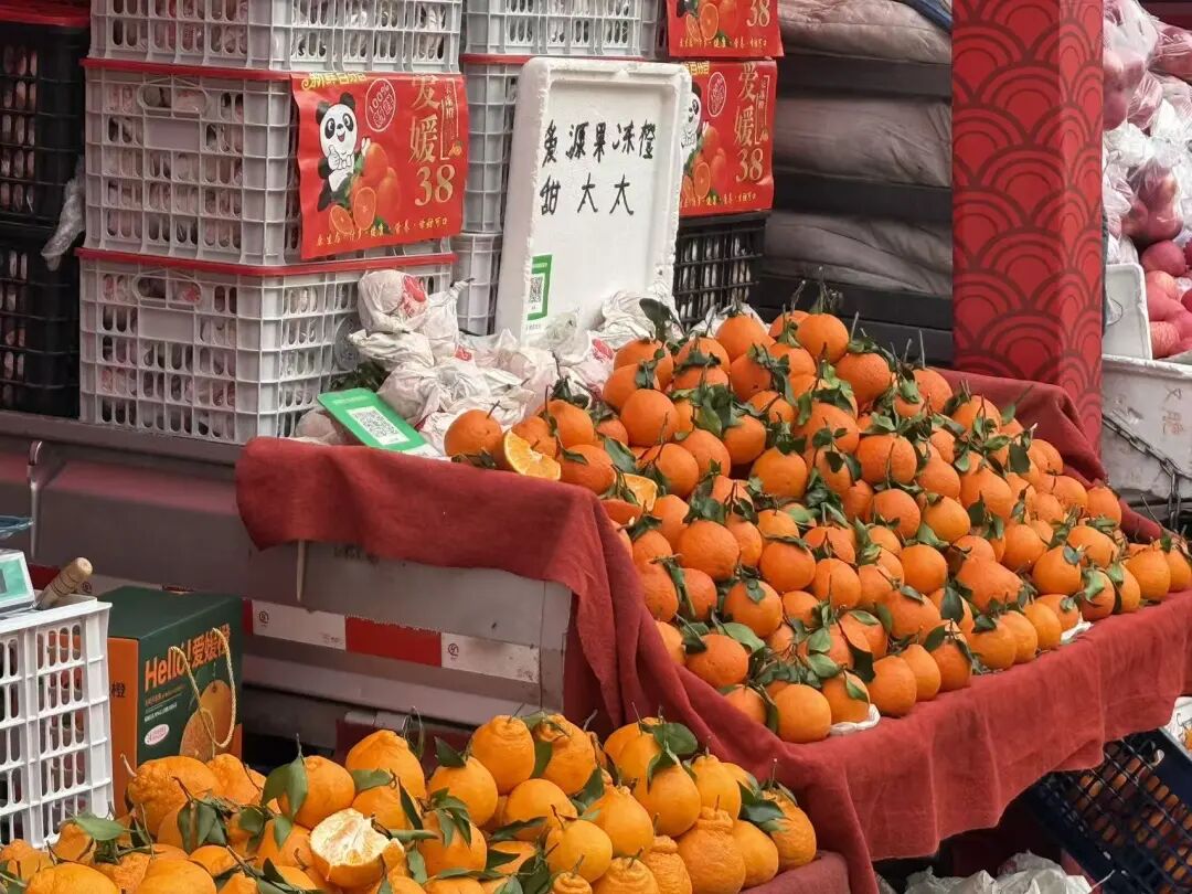 周边的水果摊位同样热闹,耙耙柑、冰糖心苹果、猕猴桃等鲜果堆成小山,清甜果香扑面而来,每一种都是新春里最鲜活的自然本味。