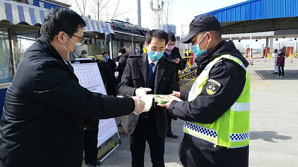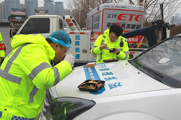 11点30分,由诗经里玉镜台温泉酒店援助的70份爱心餐,从诗经里小镇出发,前往三桥高速收费站。餐食抵达现场后,一位现场执勤的工作人员说道:“我真的太感谢他们了。大家都讲疫情可怕,但是大难面前见大爱,我没想到原来后面有这么多关怀和关心我们的人。”