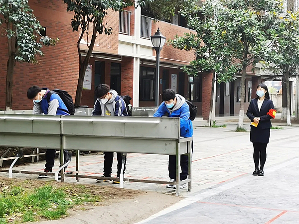 此次高三年级开学,西安高新一中沣东中学共有200余名高三学生复课,投入的老师和行政人员人数为118人,在开学前已开展模拟演练3次,开学工作有条不紊。