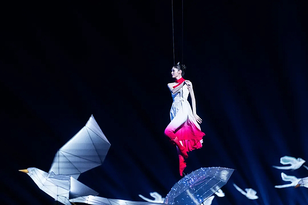 夜幕下,昆明池巧夺天工美轮美奂,今年的七夕特别节目《天下有情人》,以“天下有情人,此夕最相思”为主题,分为三大篇章。整场晚会用短片串联起来,用三个不同的故事推动晚会的进程,打造“双城·共此夕”系列短片。故事在两地关联场景进行同屏拍摄,故事中的主人公还将衔接两主场节目,带领观众从影片中走向舞台。
