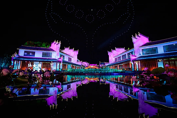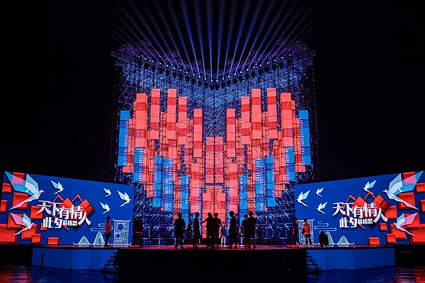 今年的晚会由中央广播电视总台匠心打造,采用户外录制形式。舞台分为南北两个会场:陕西西咸新区昆明池与江西新余仙女湖。两地实景舞台联动似极目远眺的星河一同“守望爱情”。