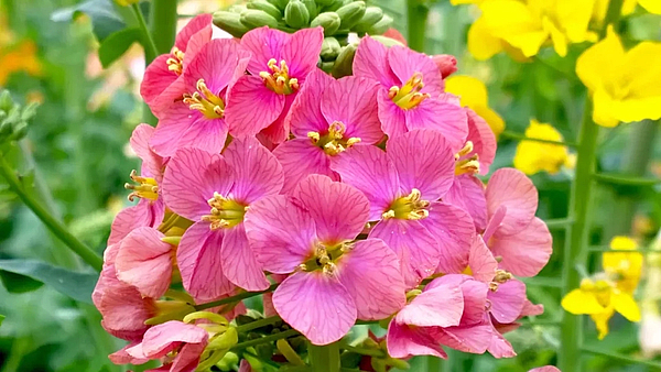 在田边小径上或走或停,抬眼望去,各色花蕊清秀雅致,入目皆是美景,再搭配和煦的暖阳,柔和的清风,丝丝花香入鼻,自是舒展身心后的神清气爽。