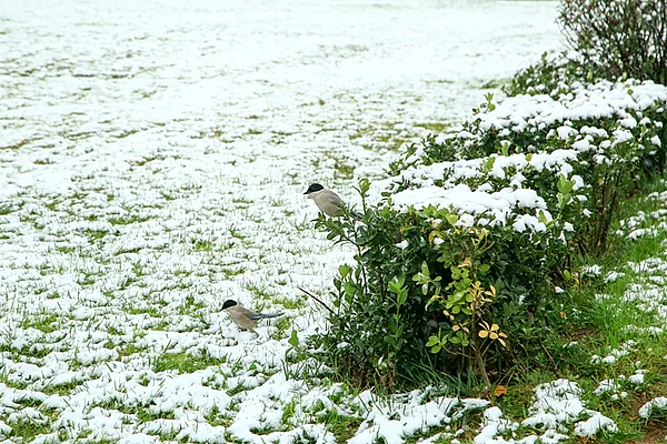 素白的雪落在枝叶上