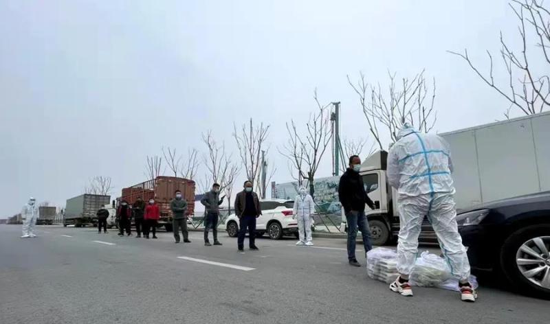 本轮疫情期间,部分货车司机和装卸工滞留在沣东新城各高速出入口和物流园区附近。了解到这一情况后,沣东新城疫情防控指挥部一方面积极协调大家的生活物资解决御寒问题,另一方面调度民生救助志愿队提供免费的三餐解决滞留人员的吃饭问题,保障这一特殊群体的基本生活。