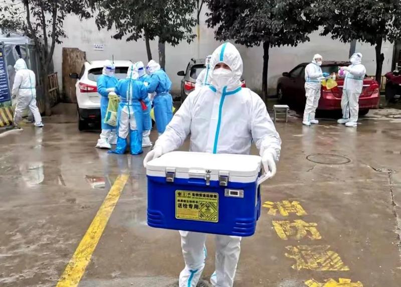 “一天跑个几十趟,肯定累,晚上睡觉的时候都不知道咋睡着的。”转运队员杨雪表示,自己主要负责将管控区的样本转运到中转站,有时候一天要跑完几十趟,忙得连饭都顾不上吃,但为了早日战胜疫情,就需要用最快的速度跑赢病毒。“看到确诊人数在不断下降,我觉得这段时间的辛苦都值得了,我和我的同事们也依旧会坚守在防疫一线,等待春暖花开,疫情散尽的那一天快点到来!”