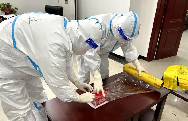 核酸检测样本的转运是一项力气活,更是一项精细活。转运队的队员们每日穿行于封控区、隔离酒店、各采样点,如果防疫措施不到位,很有可能导致二次传染。为确保样本运送过程的安全可靠,大家需要反复检查防护服是否穿戴完整,样本转运过程中禁止接触样本,非必要不能离开驾驶室;每次转运任务完成后,需同时对司机和车辆进行消杀……一系列防护措施需要反复进行,为原本就需要速度的样本转运工作增添了不少麻烦。
