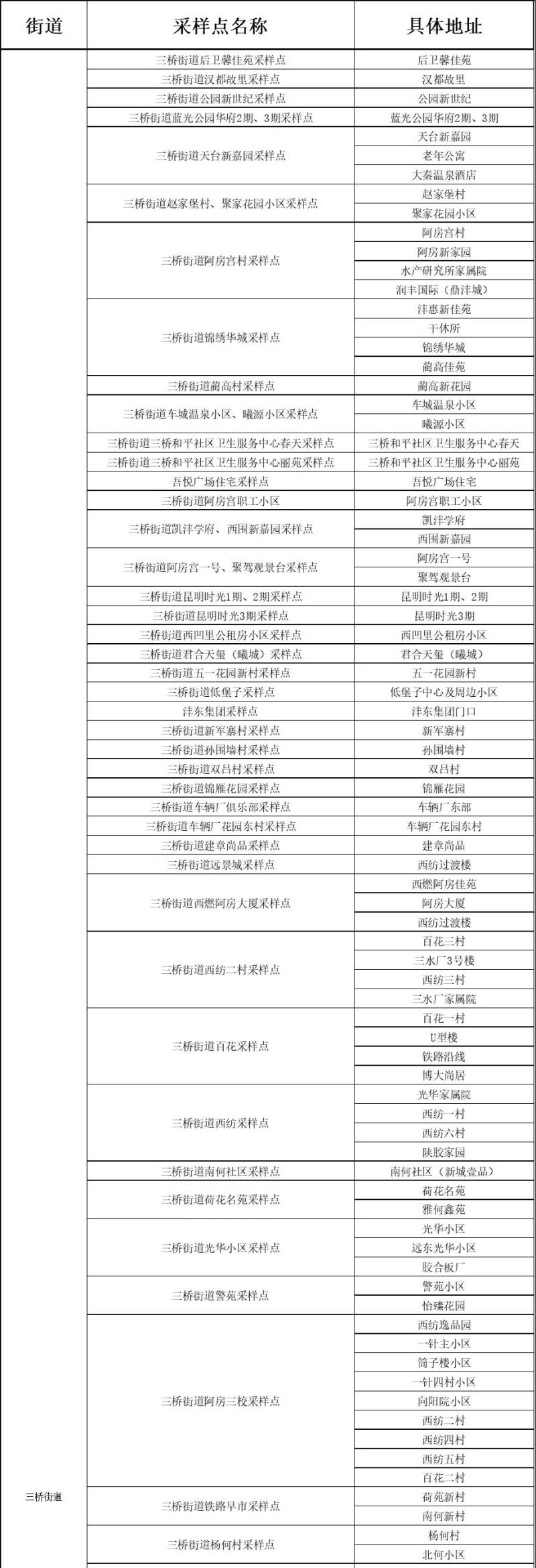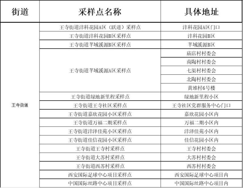 沣东新城核酸采样点位