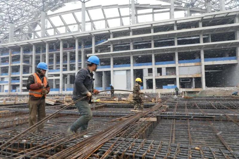 “今天雪大,大伙儿上工的时候都注意安全。” 2月7日下午,大雪纷飞,气温骤降。但在西安国际足球中心项目工地上,工人师傅们正在紧张地忙碌着。