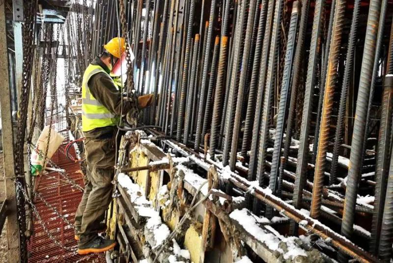 同样,在中国国际丝路中心项目现场,即便是大雪天气给项目施工带来了一定的难度,工人们仍然在做好安全措施的情况下,认真作业。
