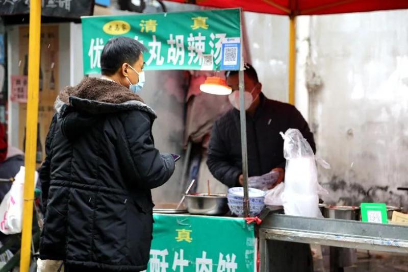 “疫情期间一直没营业,今儿想着大多数人都开始上班了,就把摊子摆出来。”早晨8点多,街边的早餐摊已经开始营业了,虽然正逢过年又遇雨雪天气,顾客并不多,但摊前冒着热气的小锅给寒冷的天气带来了些许暖意。