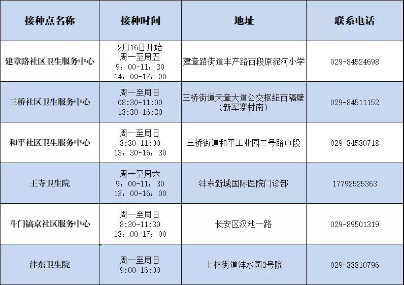 沣东新城新冠疫苗接种单位