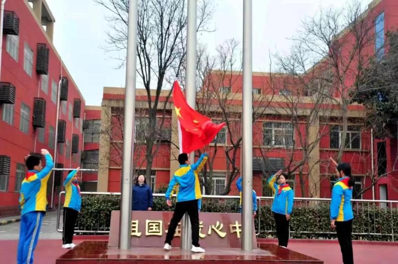伴着激昂的国歌声,鲜艳的五星红旗再次迎风飘扬,在沣东新城车辆小学的升旗仪式上,同学们目光坚定,注视国旗缓缓升起,以饱满的姿态面对新学期的到来。“新的一年,我也要更加刻苦学习,不辜负父母和老师的期望……”