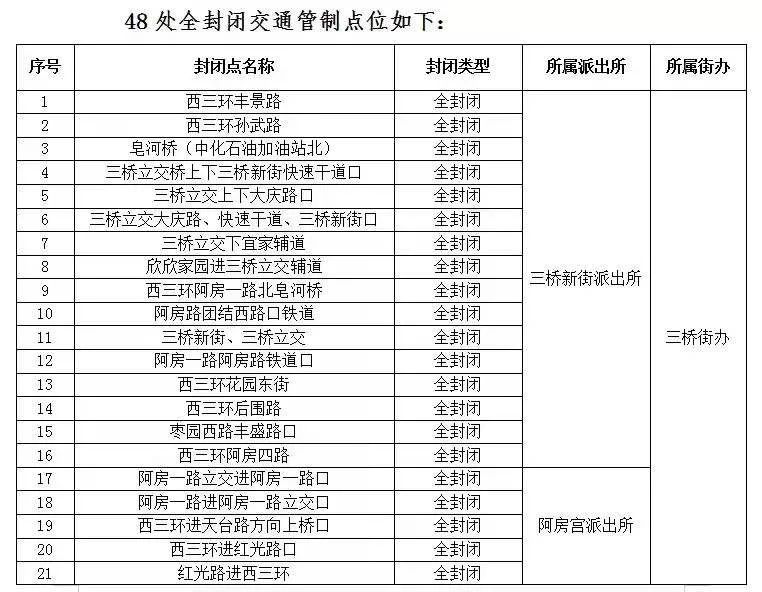 为方便因必要原因出行的人员和车辆通行,现就疫情防控临时性交通管制期间应急通道及全封闭点位公告如下: