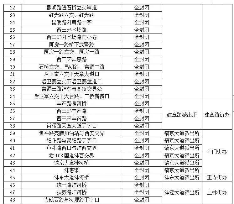进出沣东新城城市道路共设置交通管制点位56处。其中,8处为半封闭应急通道,允许执行任务的特种车辆、医疗救治车辆、民生保供车辆、物资配送车辆、抢修救援车辆、应急车辆、殡葬车辆、军警车辆,以及参与疫情防控工作和紧急生产的车辆由此通行,通行条件为持有疫情指挥部制作发放的通行证或者相关证明,禁止其余一切车辆(含电动车、非机动车)和行人通行;48处为全封闭点位,禁止一切车辆和行人通行。