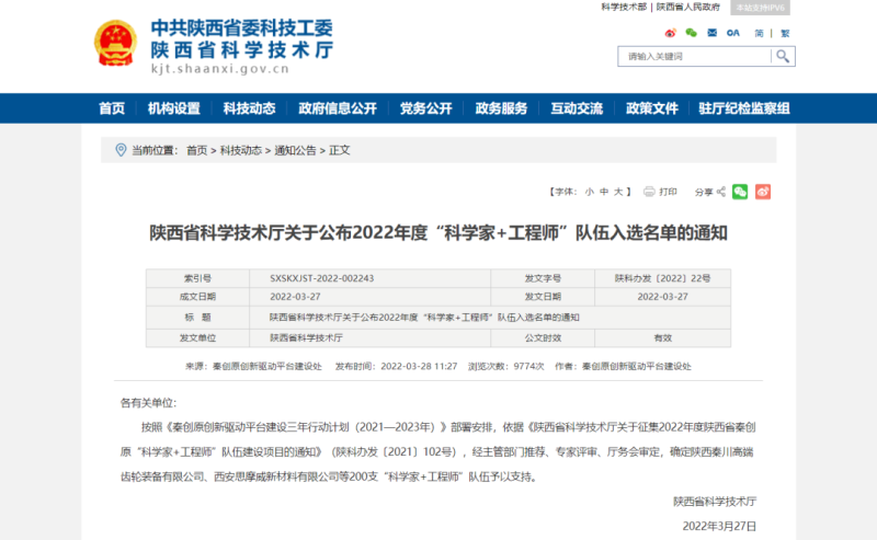 日前,陕西省科技厅公布的2022年度“科学家+工程师”队伍入选名单里,由浩瑞基因申报的第三代单分子测序临床血型检测技术研发“科学家+工程师”队伍成功入选。
