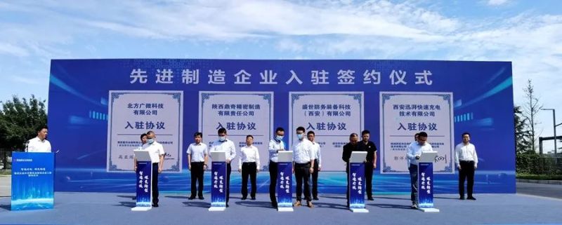 活动现场,北方广微非制冷红外探测器产业化项目、鼎奇精密制造总部基地、盛世防务精密零部件加工制造总部基地、迅湃科技动力电池检测设备生产线等4个项目正式签约入驻沣东新城信息产业园物流园区。
