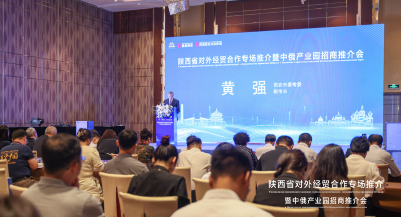 6月15日下午,在第三十二届哈尔滨国际经济贸易洽谈会暨第一届中俄地方经贸合作大会期间,由陕西省商务厅、西安市人民政府主办,西安市商务局、西咸新区开发建设管理委员会和西咸新区沣东新城管委会承办的陕西省对外经贸合作专场推介暨中俄产业园招商推介会成功举办。近百位企业家共享对俄合作成果,共谋互惠合作发展。