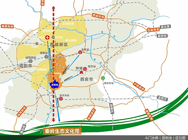 以斗门水库为载体,贯穿沣东新城的大西安城市新轴线将实现“生态恢复、文化传承、遗迹保护、水利建设”的有机统一,在保护与传承昆明池遗址区域的同时,也将对大西安城市生态环境的优化改善具有深远意义。项目建成后,将对加速西咸一体化和大西安国家中心城市建设发挥重要作用。