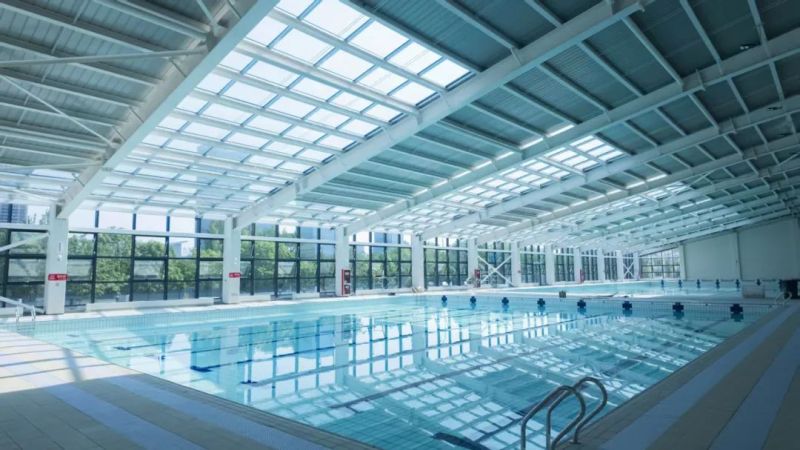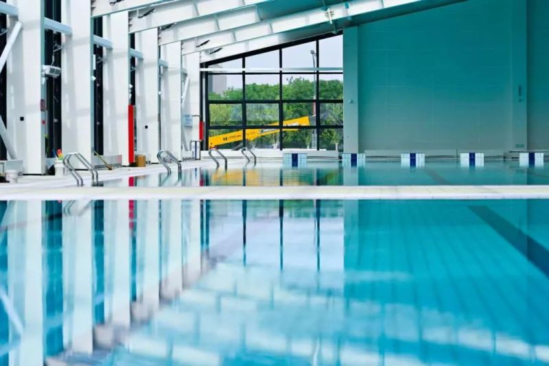 标准恒温游泳馆拥有2个泳池,分别为50米国际赛道(深度1.5m—1.9m)和25米儿童池(深度1m—1.2m),均为8泳道。泳池融合砂缸和硅藻土双过滤系统,配备双循环杀菌技术,实时监测余氯值≤0.3mg/L,水温恒定28℃~30℃。