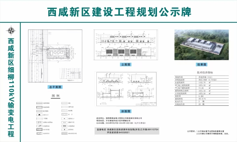 细柳110kV输变电工程项目位于科统四路与科源路丁字路口东北角。经建设单位申请,我部按程序完成该项目设计方案审查,办理项目《建设工程规划许可证》,项目概况附后。