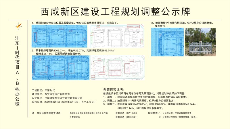 根据西安市自然资源和规划局《关于加强建设工程规划条件核实管理工作的通知》,现将沣东i时代项目A、B栋办公楼规划许可内容调整予以公示。批前公示并非最终审批结果,在公示期内,利害关系人若有意见,可来电向西咸新区自然资源和规划局(沣东)工作部、开发建设部反映。