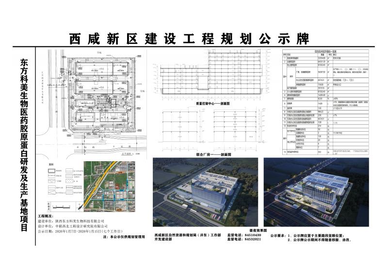 东方科美生物医药胶原蛋白研发及生产基地项目位于天章二路以东,丰安路以北。经建设单位申请,我部拟按程序完成该项目设计方案审查,办理项目《建设工程规划许可证》,项目概况附后。