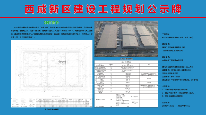 和生新兴材料产业孵化基地项目(连廊工程)位于丰安路以南,丰全路以北,天章一路以西。经过建设单位申请,我部门按程序完成该项目设计方案审查,拟为其办理项目《建设工程规划许可证》,项目概况附后。
