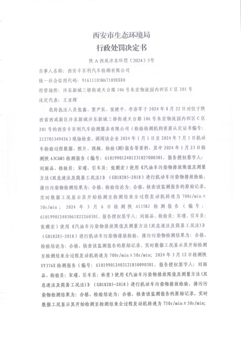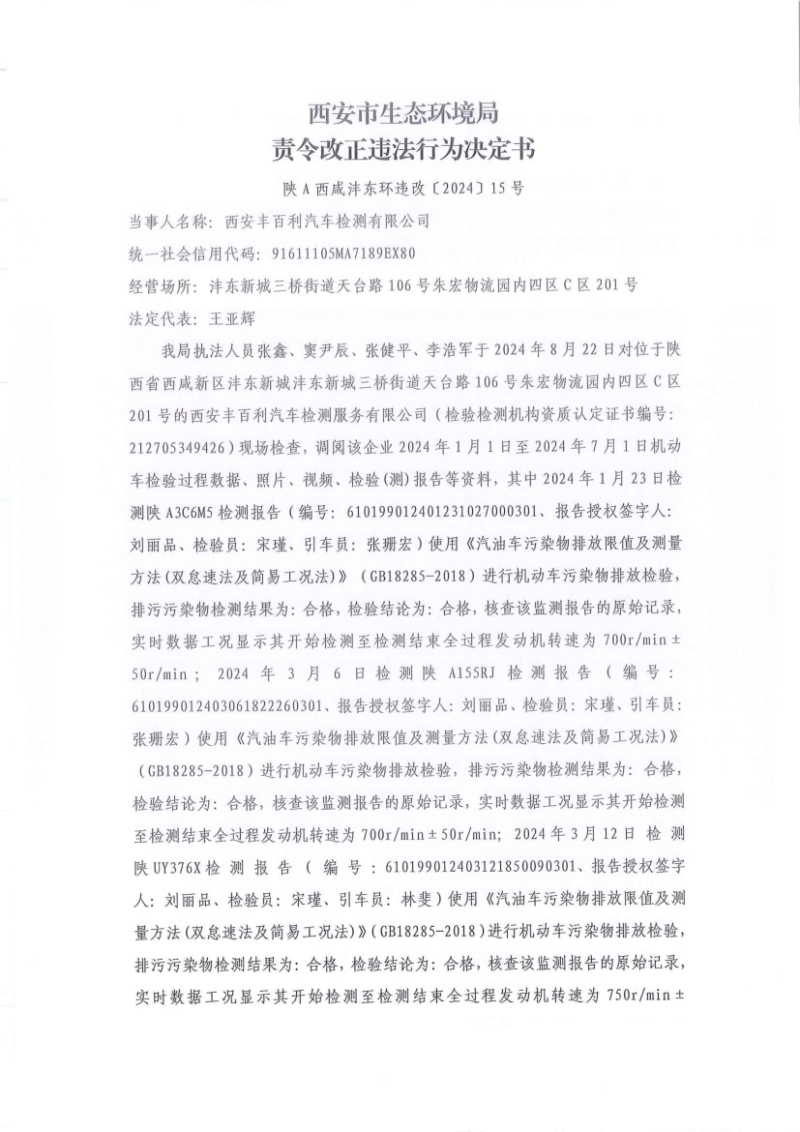 按照《环境信息公开办法(试行)》和生态环境部有关要求,西咸新区生态环境局(沣东)工作部依法公开2024年西安丰百利汽车检测服务有限公司责令改正违法行为决定和行政处罚决定信息。